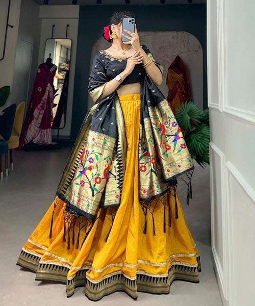 आमच्याकडे शुद्ध रेशमी हातमाग पैठणी उपलब्ध आहे – जी चिरंतन ऐश्वर्य आणि देखणेपणाचे प्रतीक आहे. तसेच, आम्ही आर्ट सिल्क पैठणी देखील सादर करतो, जी आकर्षक आणि किफायतशीर असल्यामुळे प्रत्येकाला पैठणीचे सौंदर्य अनुभवता येते. अशा प्रकारे आम्ही ग्राहकांच्या सर्व स्तरांसाठी पारंपरिकतेचे आधुनिक दर्शन घडवतो.