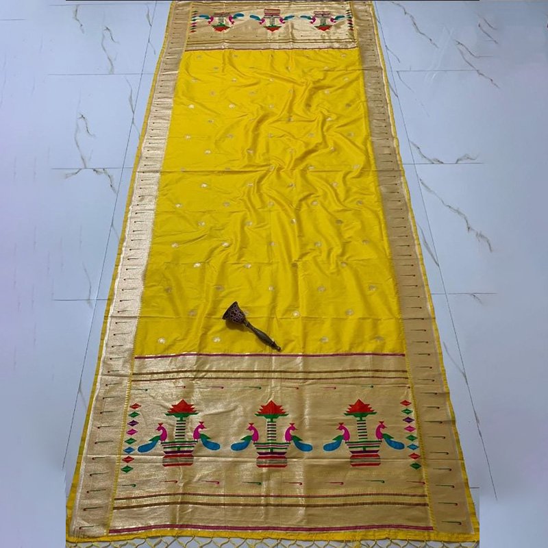 An elegant Art Silk Paithani dupatta in vibrant shades , featuring traditional (kuyri) motifs and a classic Muniya border. The intricate detailing with multicolor Paithani design and zari work adds a touch of richness, making it a perfect match for sarees, lehengas, or festive outfits. With a graceful 2.5-meter length, this dupatta beautifully blends tradition with sophistication..